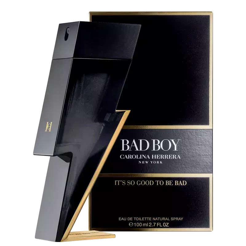 O frasco do perfume Bad Boy Carolina Herrera possui formato de raio, que é um símbolo cultural e universal de heroísmo, que representa o estilo imprevisível e singular do nosso "garoto mau". Afinal, um raio nunca será idêntico ao outro.
