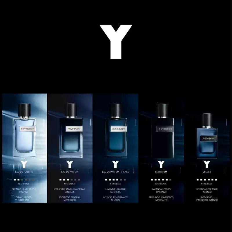 Y é um perfume Yves Saint Laurent masculino fougère amadeirado. Uma interpretação sedutora da fragrância icônica Y . O Perfume Masculino Y , de Yves Saint Laurent , representa um homem que realizou seus sonhos e está se movendo em direção a um novo amanhã. É um homem capaz de enfrentar os desafios que lhe são apresentados, não tem nada como garantido. Ele sempre vai continuar acreditando. Y Yves Saint Laurent traz um retrato profundo da assinatura Y em uma intensa fougère branca e escura, revelando uma fragrância profunda, fresca e masculina. O refil de Y de 150ml permite reabastecer os formatos de 10ml, 60ml e 100ml com a menção "recarregável" na embalagem externa. Y Eau de Parfum está disponível nas volumetrias 60ml, 100ml, 200ml e refil de 150ml. Conheça também a versão Y Eau de Toilette , grande sucesso de Yves Saint Laurent.